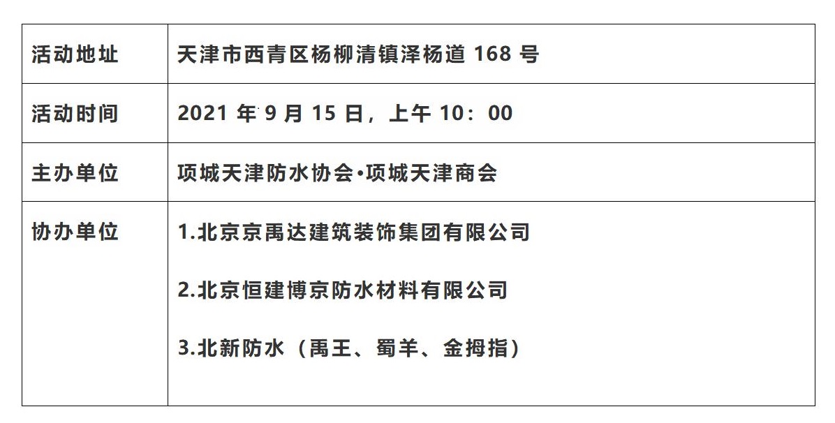 出席此次活動(dòng)的嘉賓有:項(xiàng)城·天津協(xié)會(huì)、項(xiàng)城·天津防水協(xié)會(huì)會(huì)長王森先生、秘書長曲長中先生、北京京禹達(dá)建筑裝飾集團(tuán)有限公司董事長夏紅偉先生等商會(huì)重要領(lǐng)導(dǎo)。